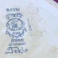 Used between 1890 and 1920, the well known "Royal Bonn", here shown above "Delft." on Delftware by Mehlem.